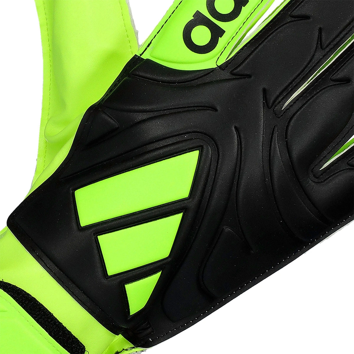Gants de gardien de but adidas Club Cup. Gants adultes de couleur noir-citron lucide avec coupe plate.