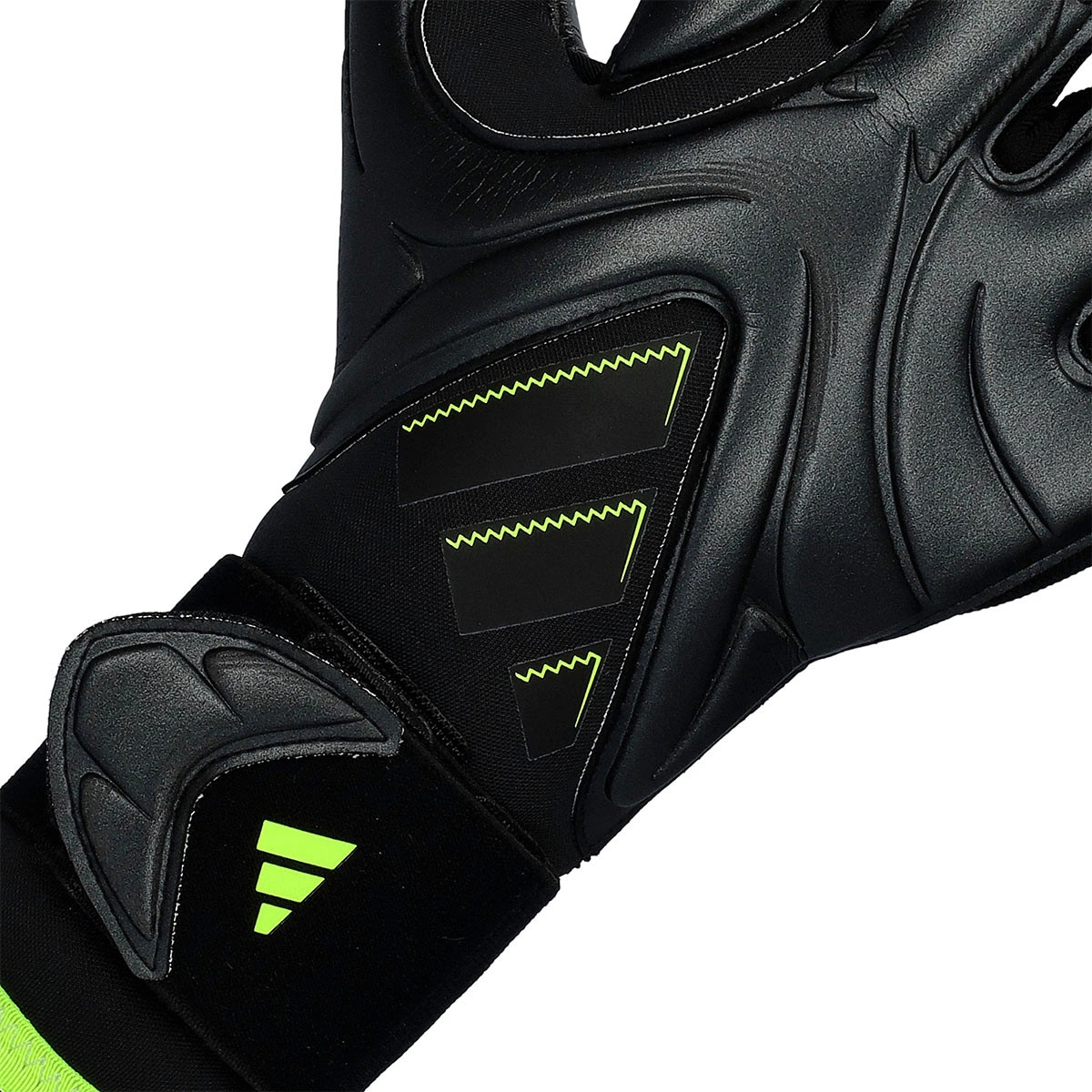Gants adidas Copa Pro en coloris Black-Carbon-Lucid Lemon. Gants de gardien pour adulte avec coupe négative.