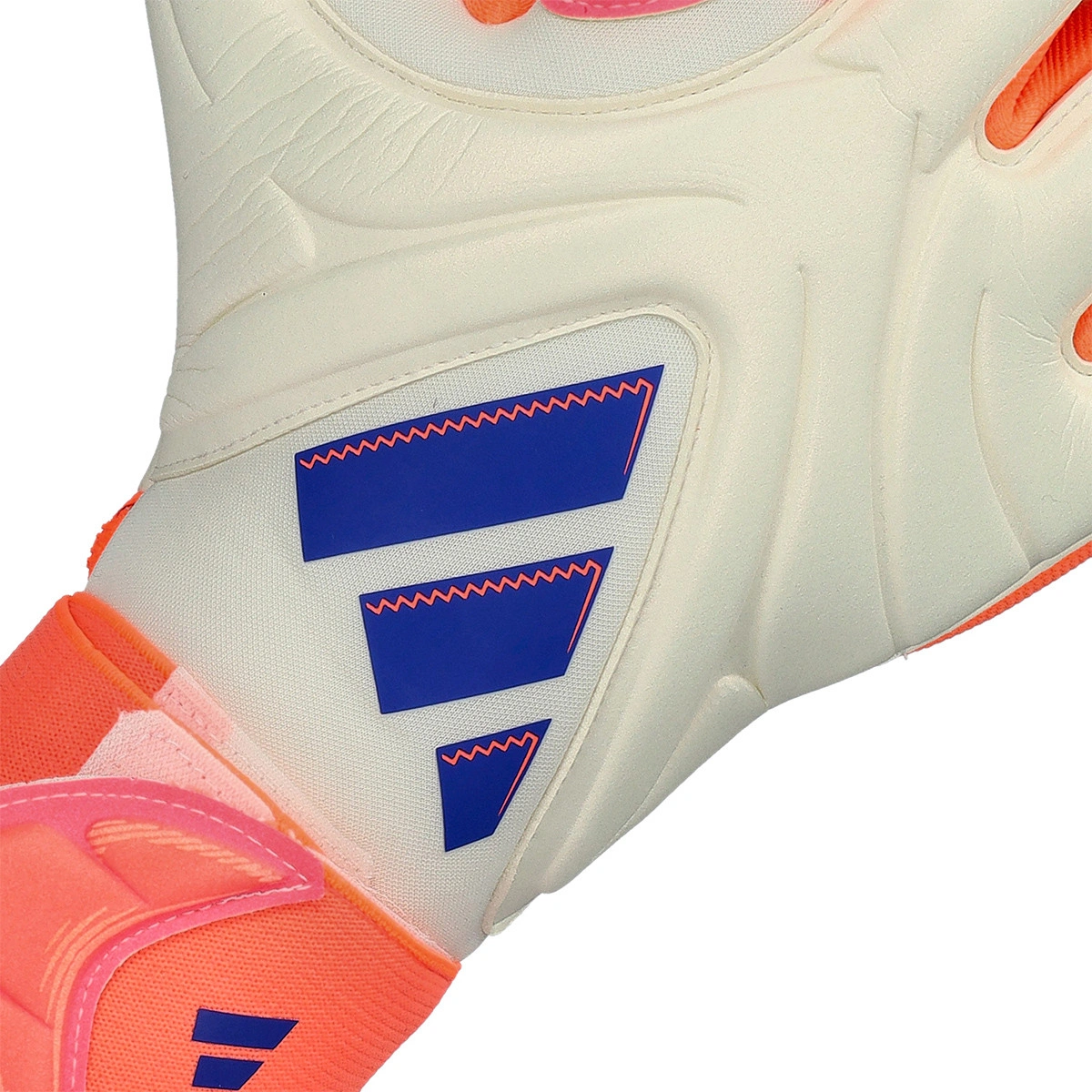 Gants de gardien de but Copa Pro d'adidas. Gants coupe négative en coloris Off white-Lucid blue-Signal coral.