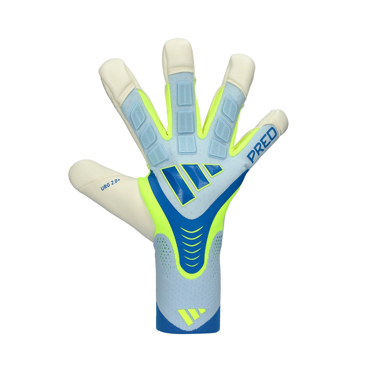 Gants de gardien Predator Pro Hybrid d'adidas. Gants pour adulte montés en coupe négative en coloris crystal sky-solar yellow.