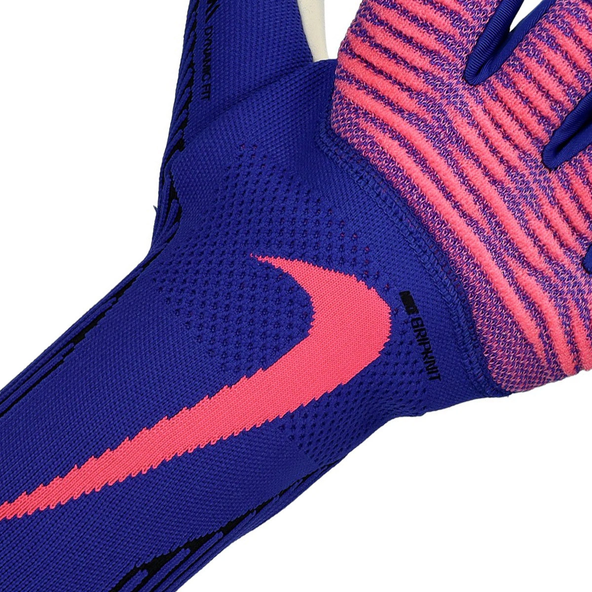Gants de gardien Phantom Dynamic Fit en coloris Racer blue-black-pink blast. Gants Nike pour adulte avec coupe négative.