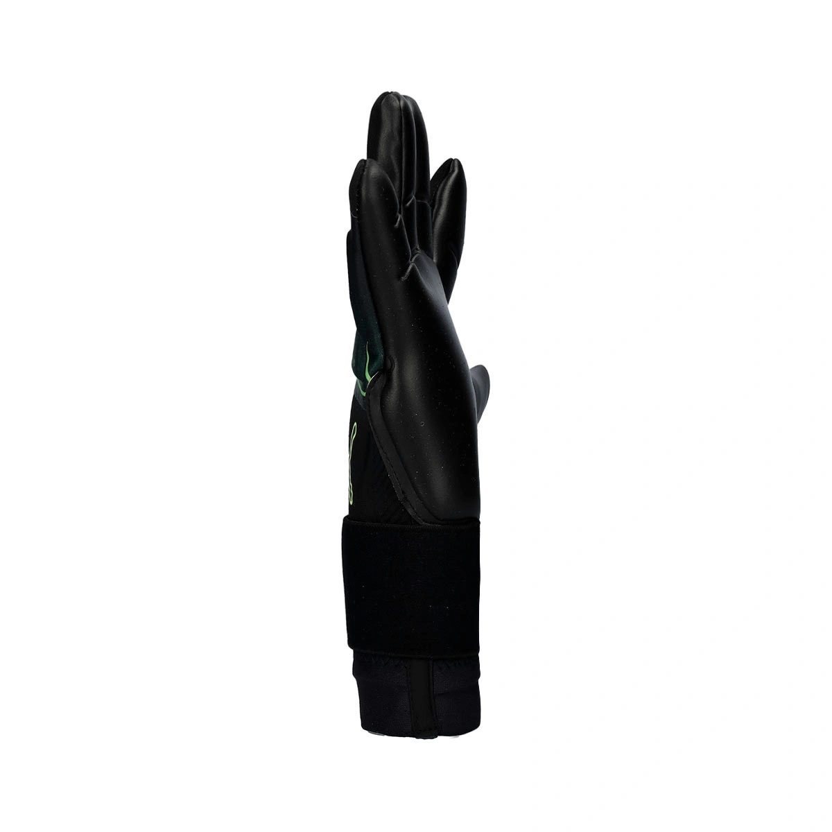 Gants de gardien de but Ultra Ultimate Hybrid en couleur Black-Green Terrain-Fizzy Light. Gants montés en coupe négative.