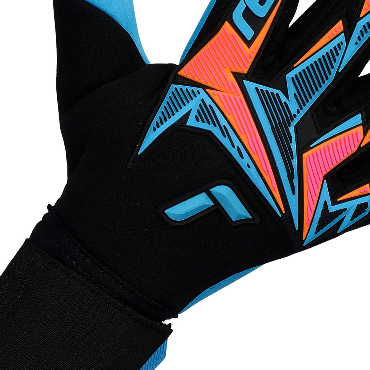 Gants de gardien Attrakt Freegel Aqua de Reusch. Gants pour adulte en coloris black-shocking orange-aqua blue.