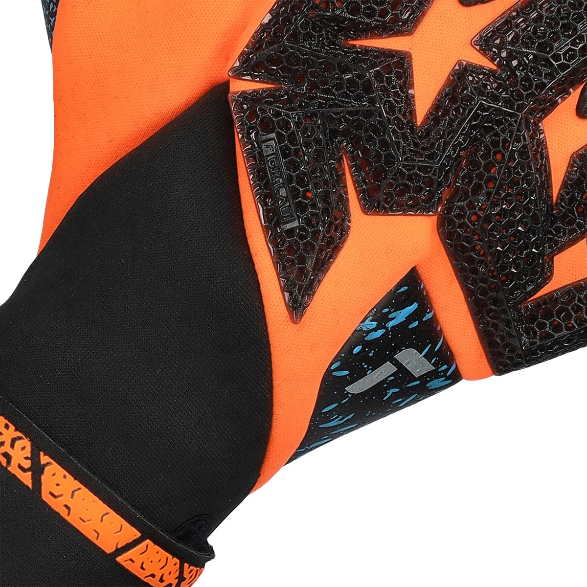 Gants de gardien de but Attrakt Fusion Carbon 3D. Gants adultes en noir-orange choquant-noir.