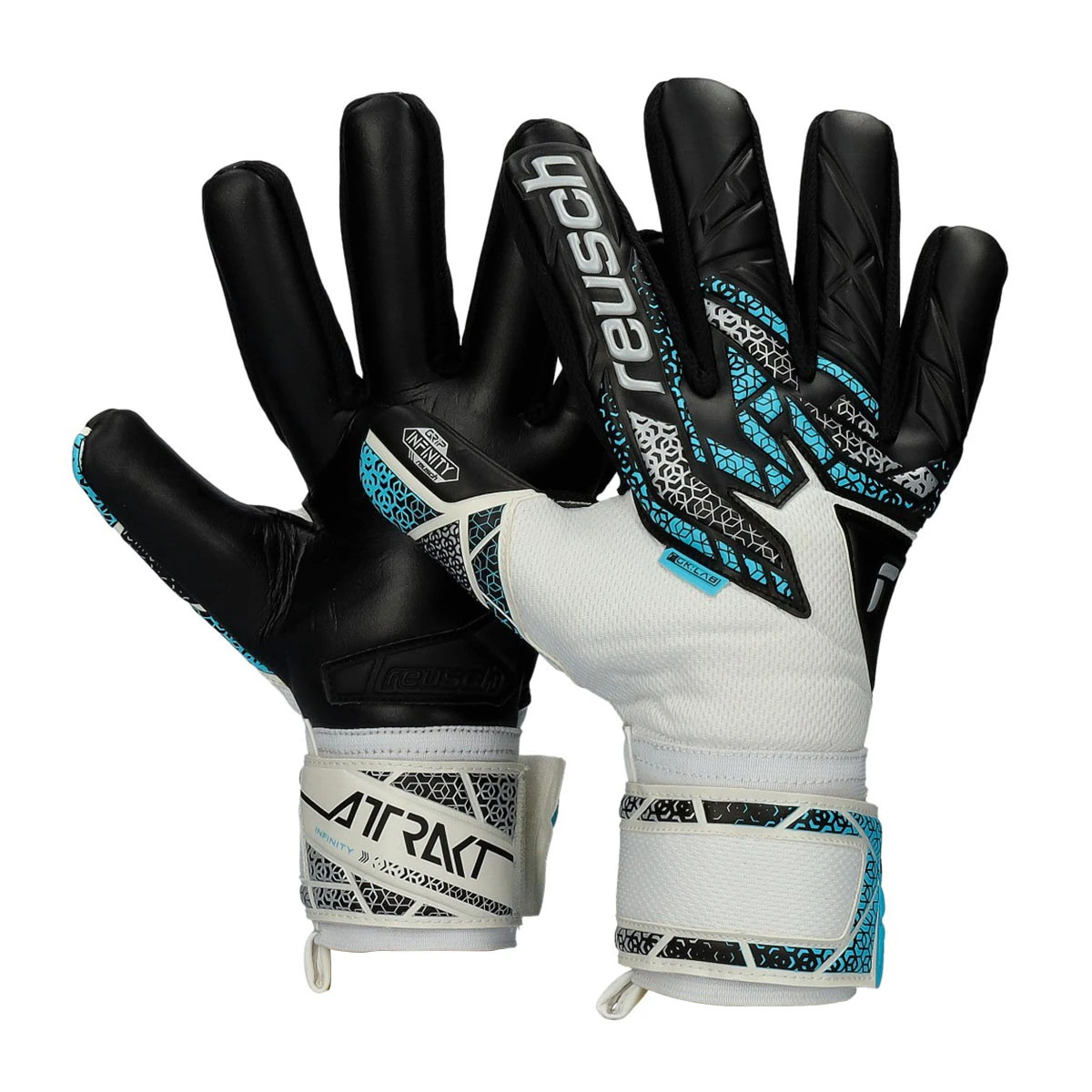 Gants de gardien de but Attrakt Infinity de Reusch. Gants adultes de couleur White-Silver-Black.
