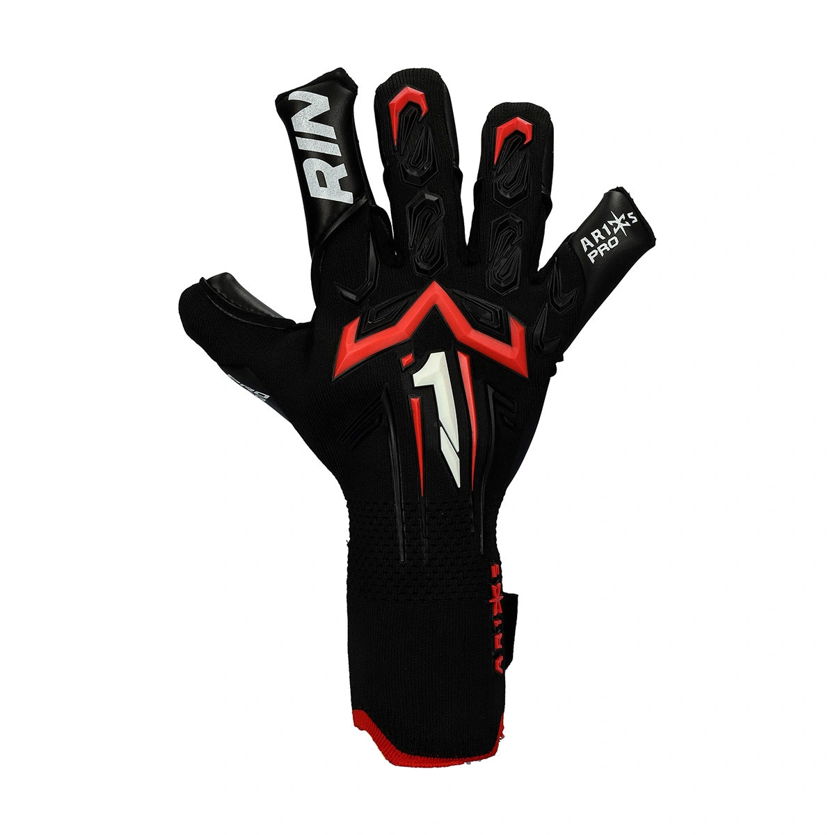 Gants de gardien Aries Pro de la marque Rinat. Gants pour adulte en coloris Black avec coupe rollfinger.
