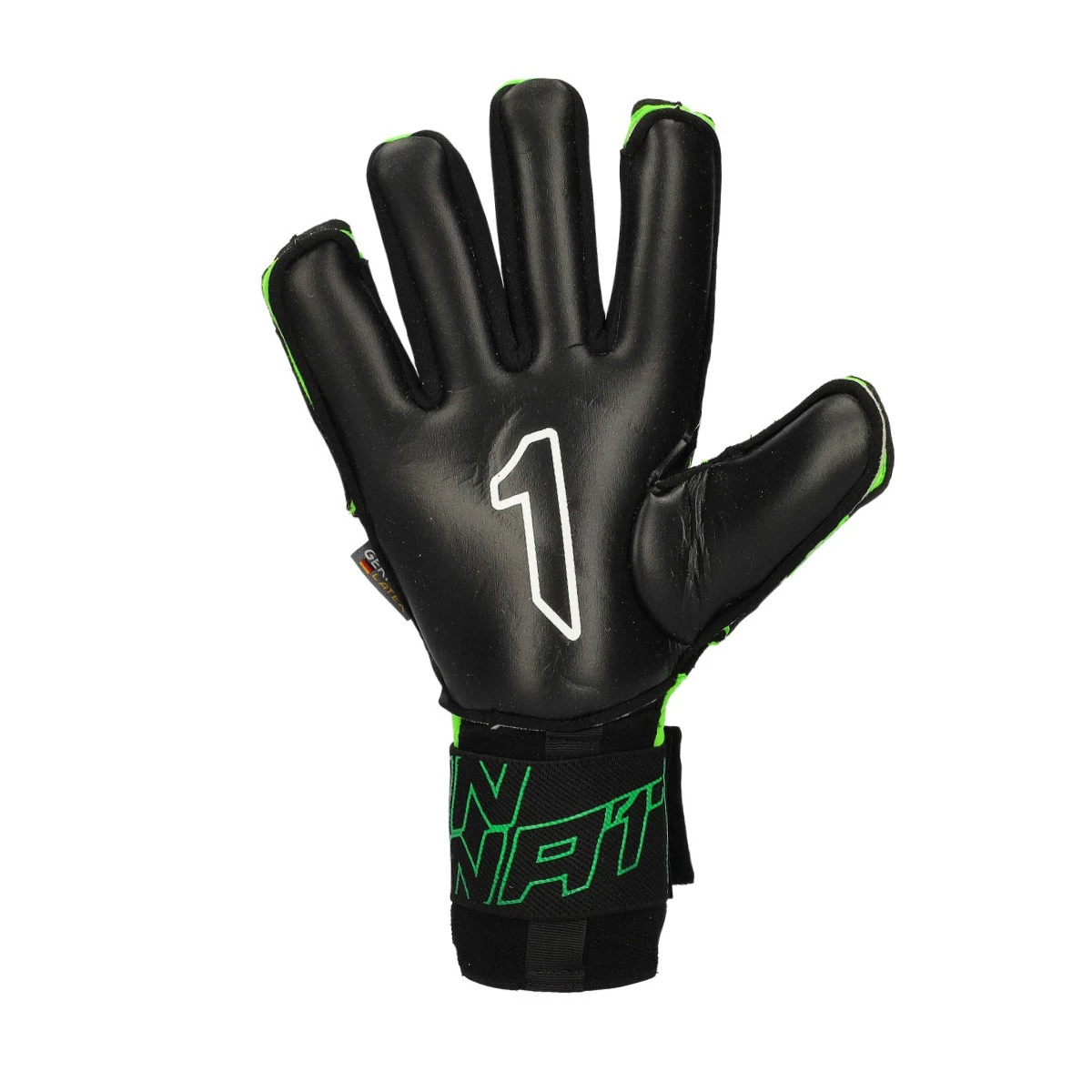 Gants de gardien de but Egotiko Vengador Alpha de Rinat. Gants adultes montés sur coupe roll négative de couleur Green-Black.