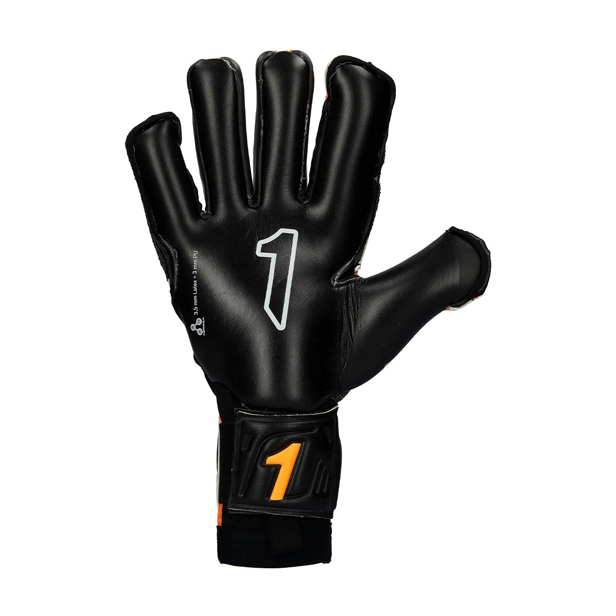 Gants de gardien Egotiko X Pro de Rinat. Gants pour adulte de couleur orange-noir, montés en coupe roll-negative.