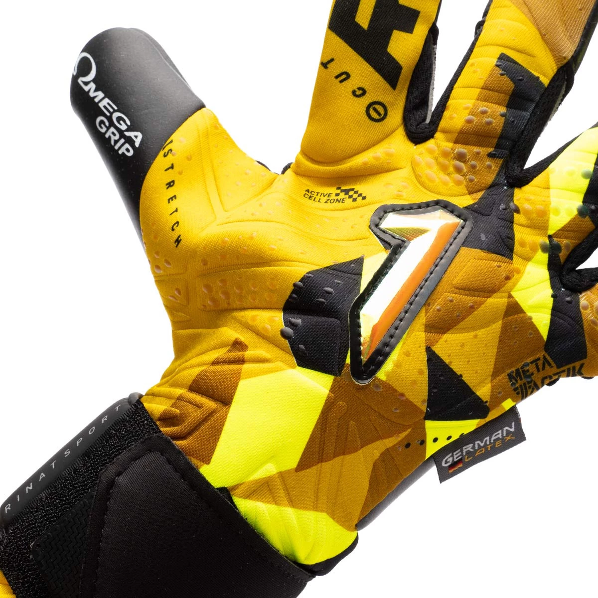 Gant de gardien de but Meta Tactik GK Alpha Exclusive de Rinat. Gant Black-Gold avec coupe négative.