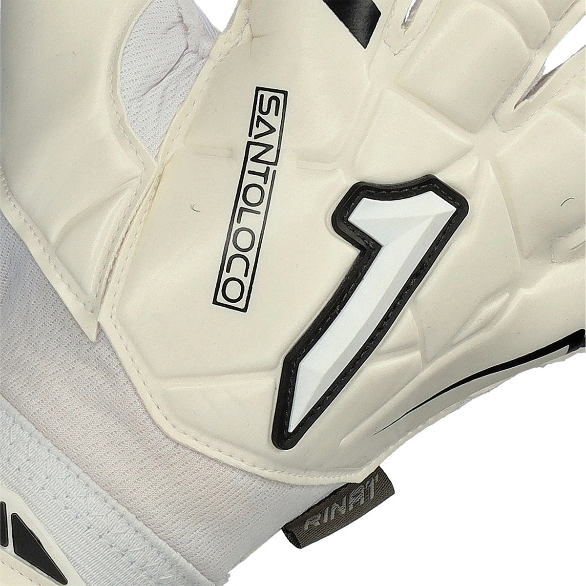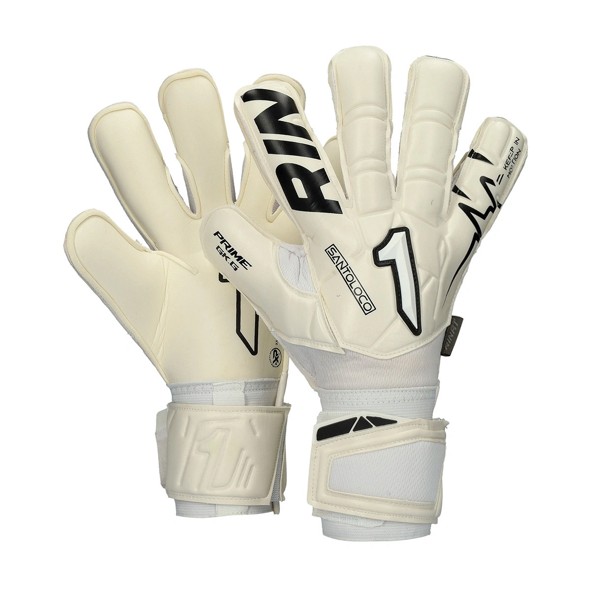 Gants de gardien Santoloco Prime de la marque Rinat en White, coupe rollfinger.