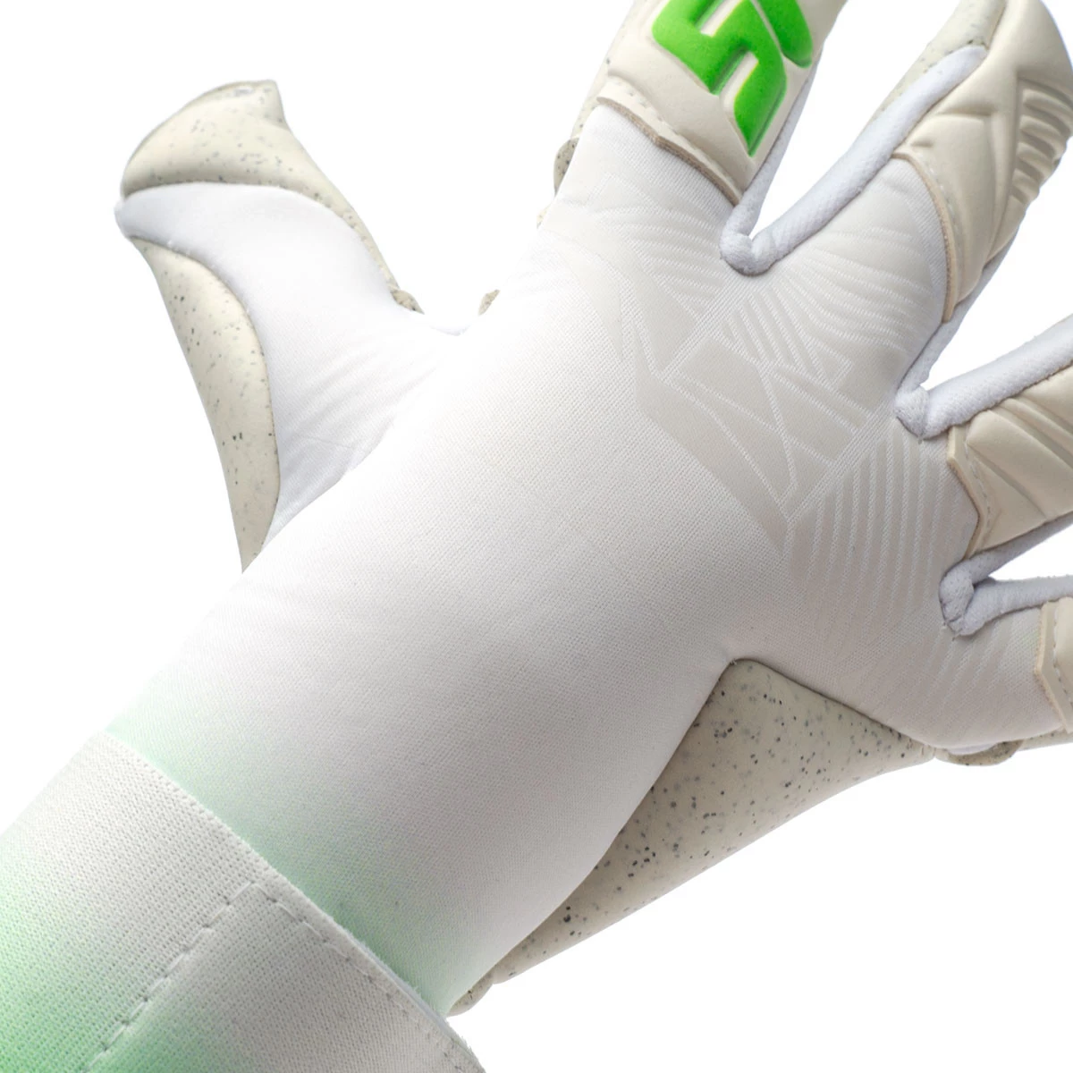 Le gardien gant blanc est celui qui parvient à bloquer chaque tir, créant une fusion visuelle entre la main et le ballon. La collection White Pack vous encourage à essayer d'obtenir cette sensation de résoudre chaque attaque sur votre objectif en bloquant, sans donner de second jeu à vos rivaux et sans vous tacher les mains.