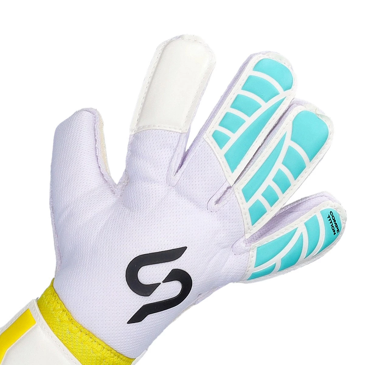Gants de gardien de but Earhart Elite de la marque SP en coloris White-Cyan. Gants montés en coupe rollfinger.