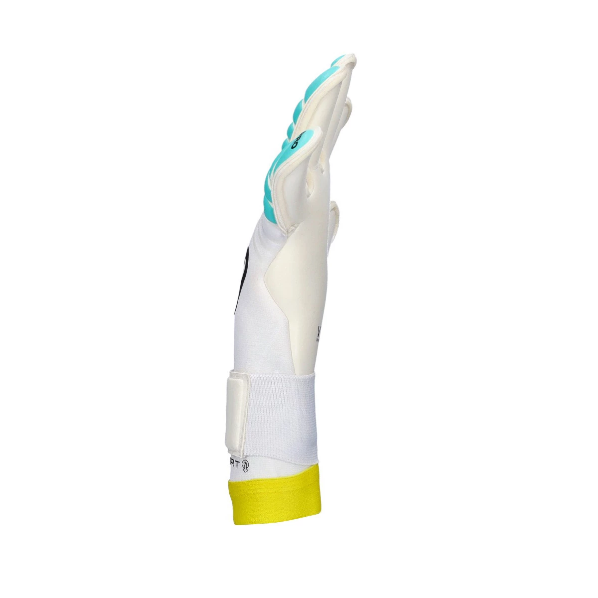 Gants de gardien de but Earhart Pro de la marque SP en couleur White-Cyan. Gants montés en coupe rollfinger.