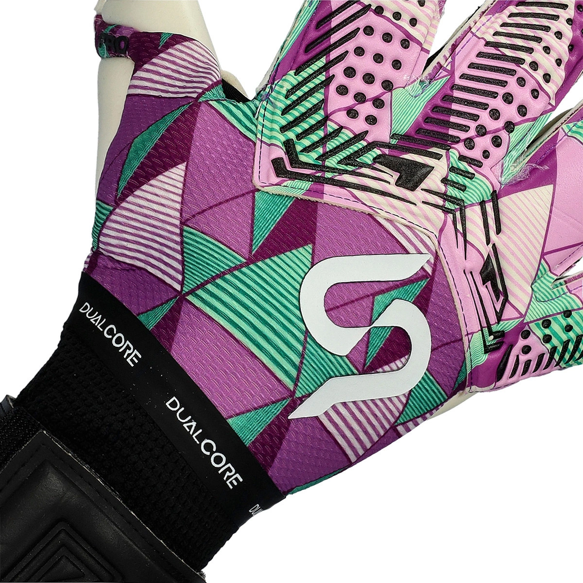 Gants de gardien Pantera Pro Retro de la marque SP en coloris White-Purple-Blue. Gants pour adulte montés en coupe rollfinger.