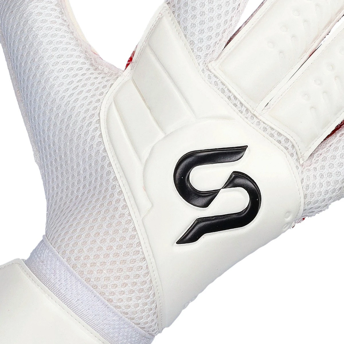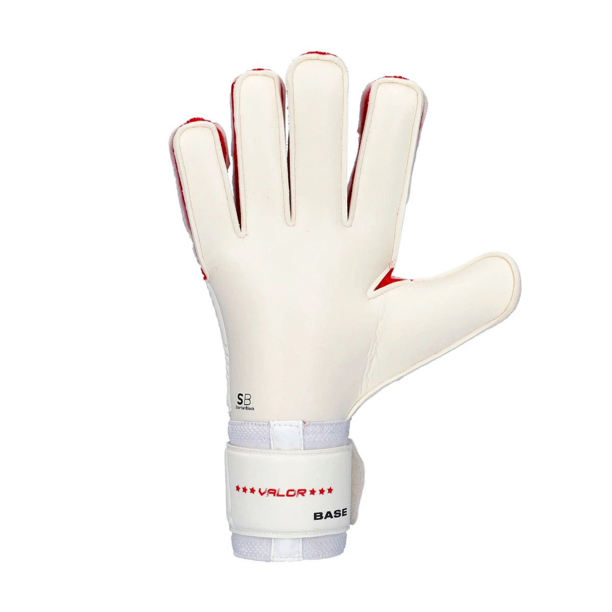 Gants de gardien de but Valor Base de la marque SP en Blanco-Rojo. Gants adultes avec coupe plate.
