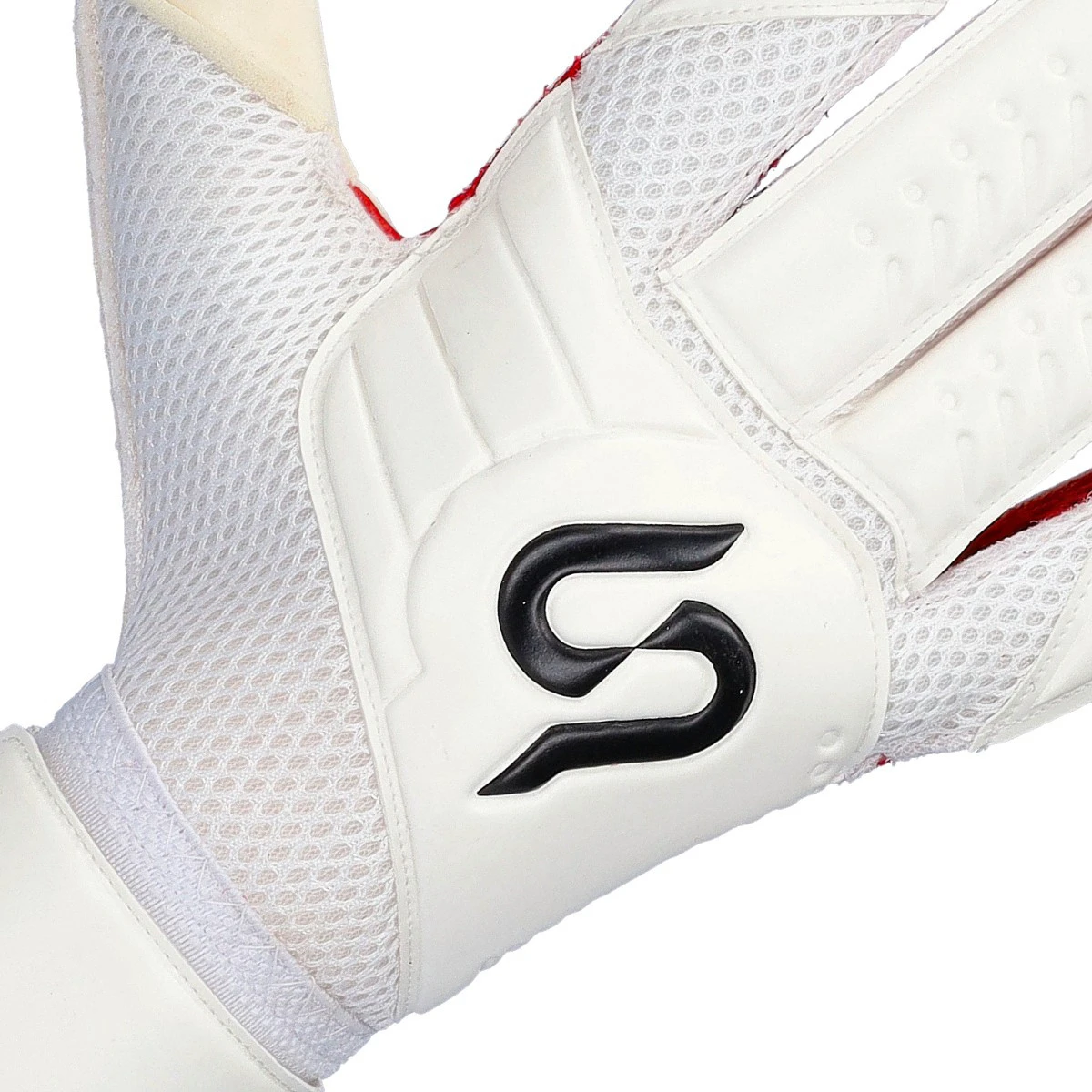 Gants de gardien de but Valor Competition de la marque SP en Blanc-Rouge. Gant adulte avec coupe plate.
