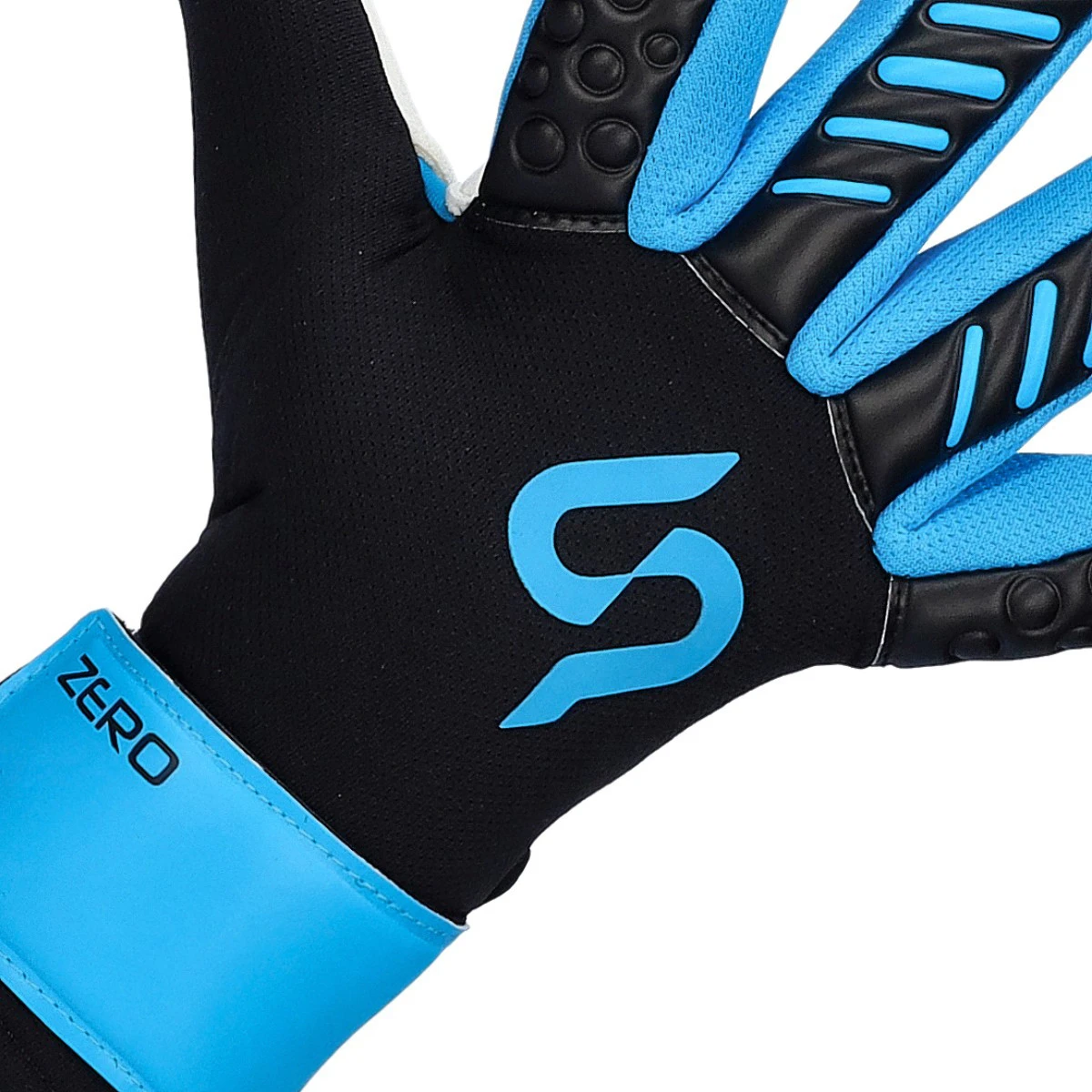 Gants de gardien de but Zero Competition pour enfants par SP. Gants de couleur noir-cyan avec coupe negativo.