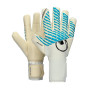 Gants de gardien Fangmaschine Cybertec Absolutgrip Hn de la marque Uhlsport. Gants pour adulte de couleur blanc-cyan ciber, coupe négative.
