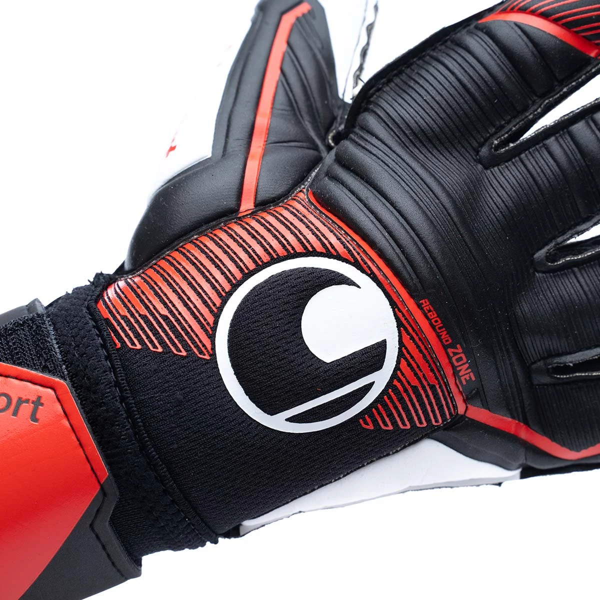 Gant de gardien Powerline Soft Pro pour enfants de la marque Uhlsport de couleur Noir-Rouge-Blanc.