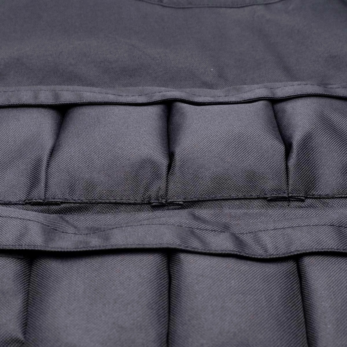 Le matériau est 100% polyester et possède des poches à fermeture éclair pour ajuster le poids avec des poids de 400 grammes jusqu'à un maximum de 8 kg.
