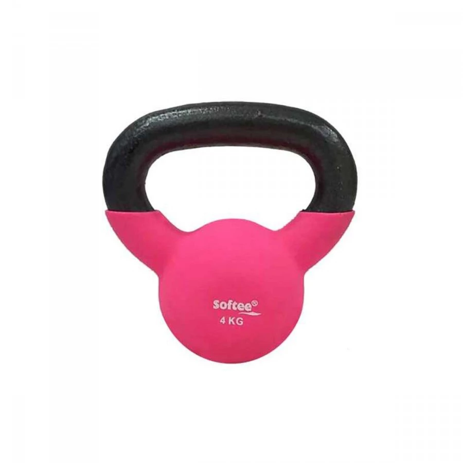 Kettlebell de 4 kg recouvert de néoprène rose. Ideal pour entraîner la force.