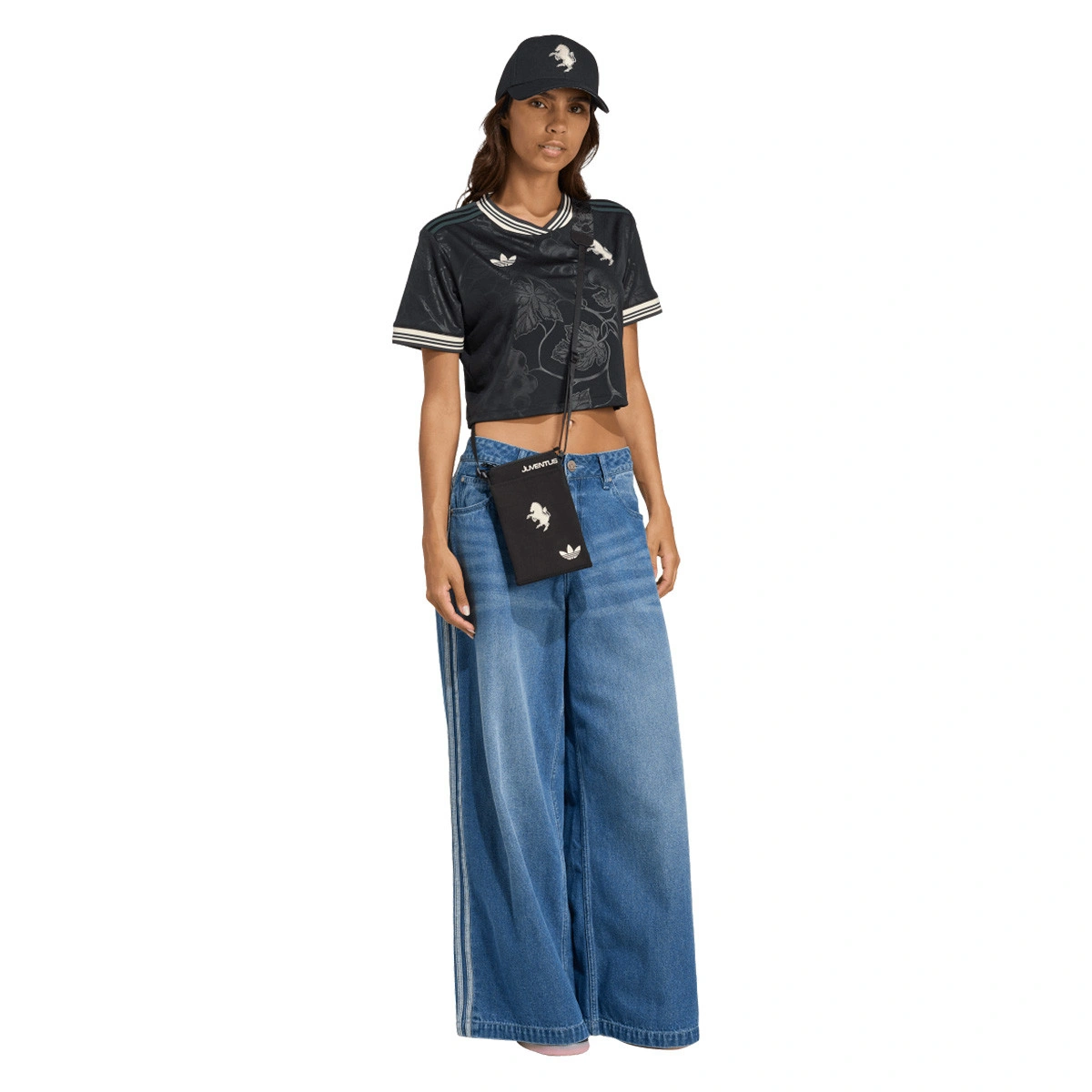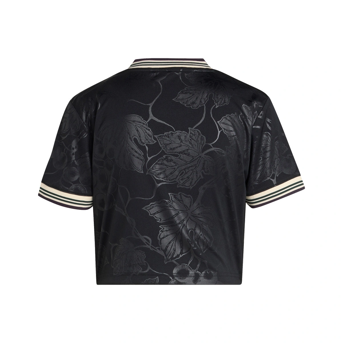 Maillot de la troisième tenue de la saison 2025-2026 de la Juventus FC en version crop top pour femme. Ce maillot rend hommage à la tradition viticole de la région du Piémont. Le trèfle adidas et l'écusson classique du club, brodés et contrastant avec les couleurs noires du maillot, s'associent à un imprimé subtil inspiré des vignobles pour créer un design discret et élégant.