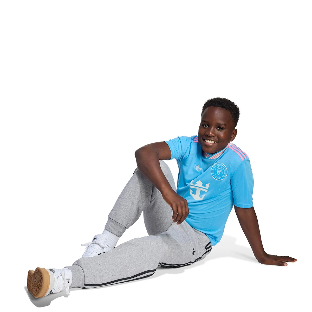 Le troisième kit garçon de l'Inter Miami CF pour la saison 2025-2026 est un hymne à la passion du football. Conçu par adidas, les couleurs bleu océan de ce troisième kit ne sont interrompues que par des vagues de fines rayures et des touches de rose pour une élégance placide.