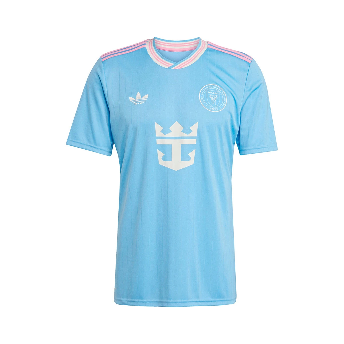La troisième tenue de l'Inter Miami CF pour la saison 2025-2026 est un hymne à la passion du football. Conçu par adidas, les couleurs bleu océan de ce troisième kit ne sont interrompues que par des vagues de fines rayures et des touches de rose pour une élégance placide.