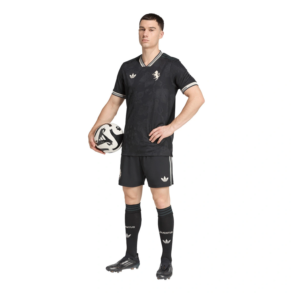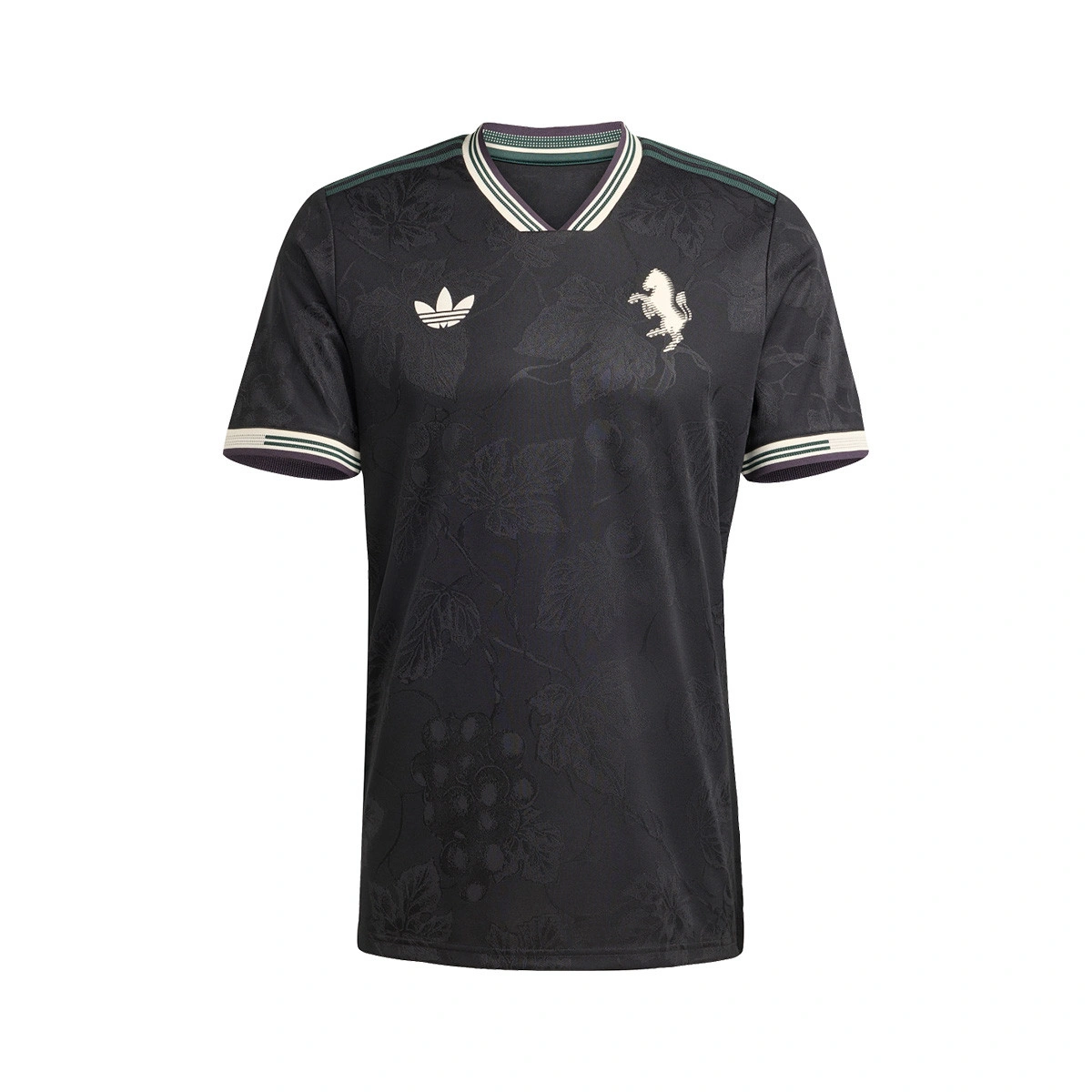 Rendez hommage à vos héros du football avec la troisième tenue de la Juventus FC pour la saison 2025-2026. Un maillot qui rend hommage à la tradition viticole de la région du Piémont. Le trèfle adidas et l'écusson classique du club, brodés et contrastant avec les couleurs noires du maillot, s'associent à un imprimé subtil inspiré des vignobles pour créer un design discret et élégant.