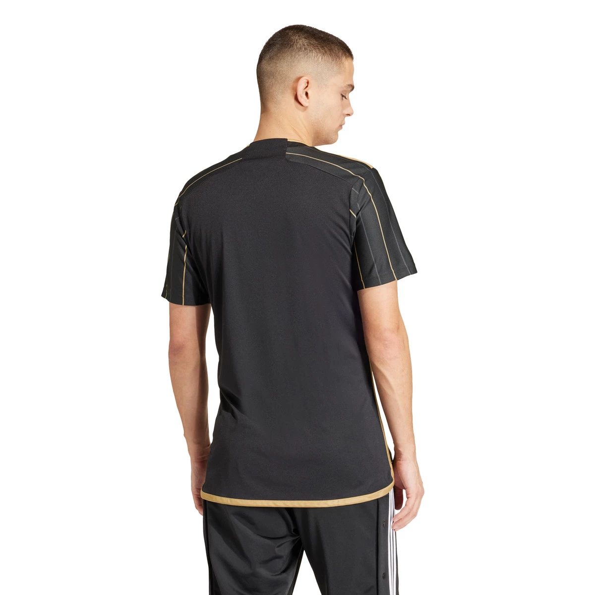 Maillot domicile de Los Angeles pour la saison 2024-2025. Modèle noir avec détails dorés et écusson brodé sur la poitrine. Tissu en polyester intégrant la technologie Aeroready pour vous garder au frais et au sec pendant l'activité physique.