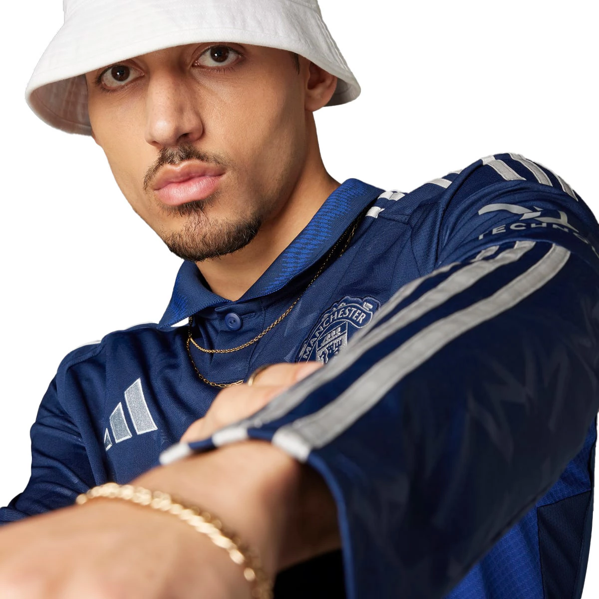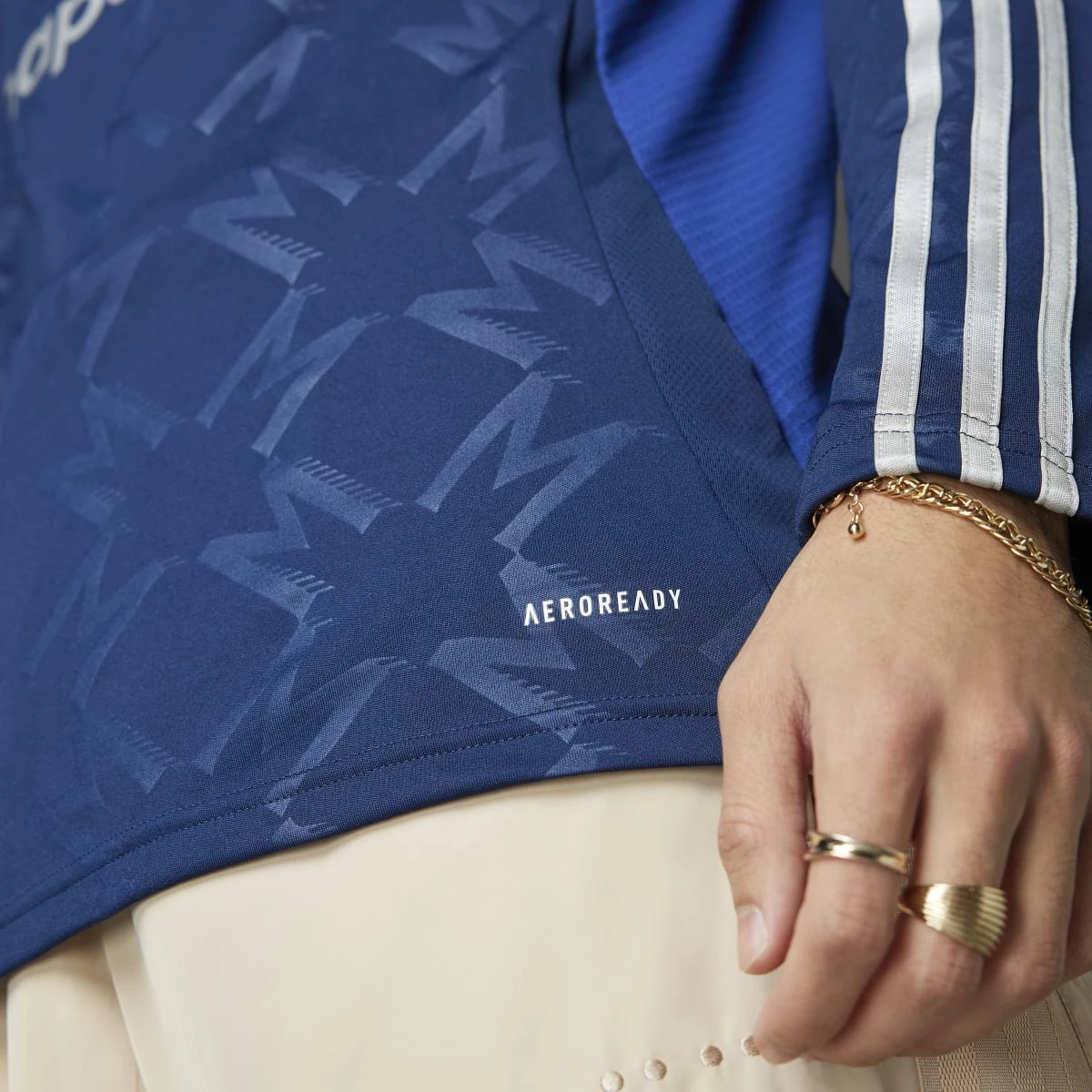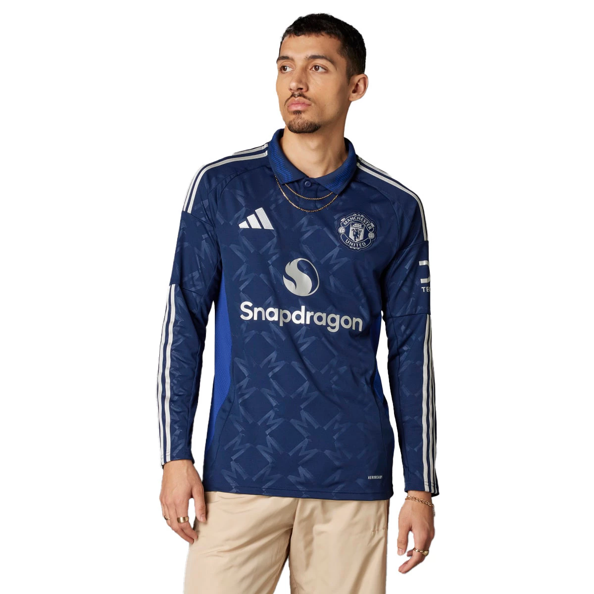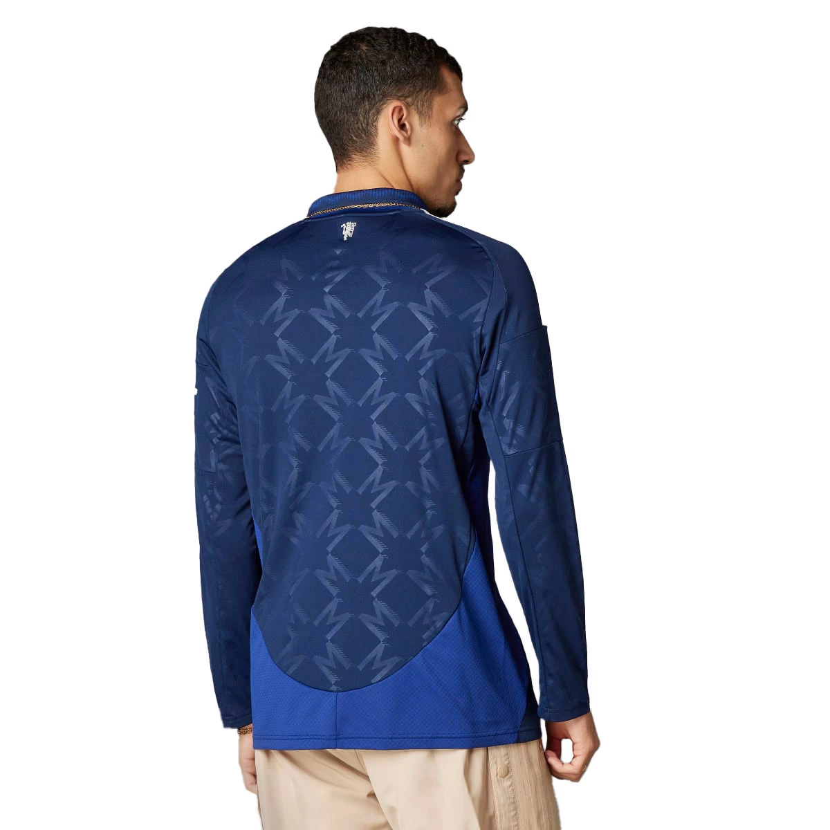 L'imprimé bleu clair sur l'élégant col du polo est un clin d'œil à la rivière qui coule le long d'Old Trafford. La technologie respirante AEROREADY et le design à manches longues assurent le confort des supporters lors des déplacements.
