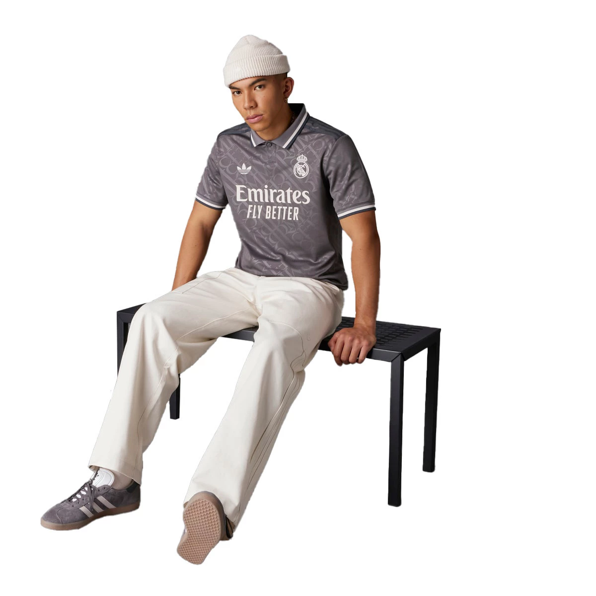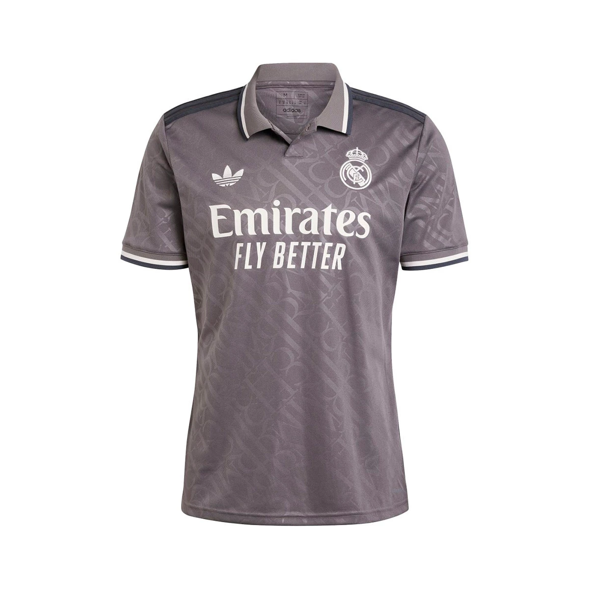 L'élégance est sa marque de fabrique. Ce troisième maillot du Real Madrid présente un monogramme avec les initiales "RMCF", inspiré des panneaux de signalisation traditionnels de Madrid. Longtemps absent d'un maillot de football adidas, le design ramène l'emblématique trèfle.