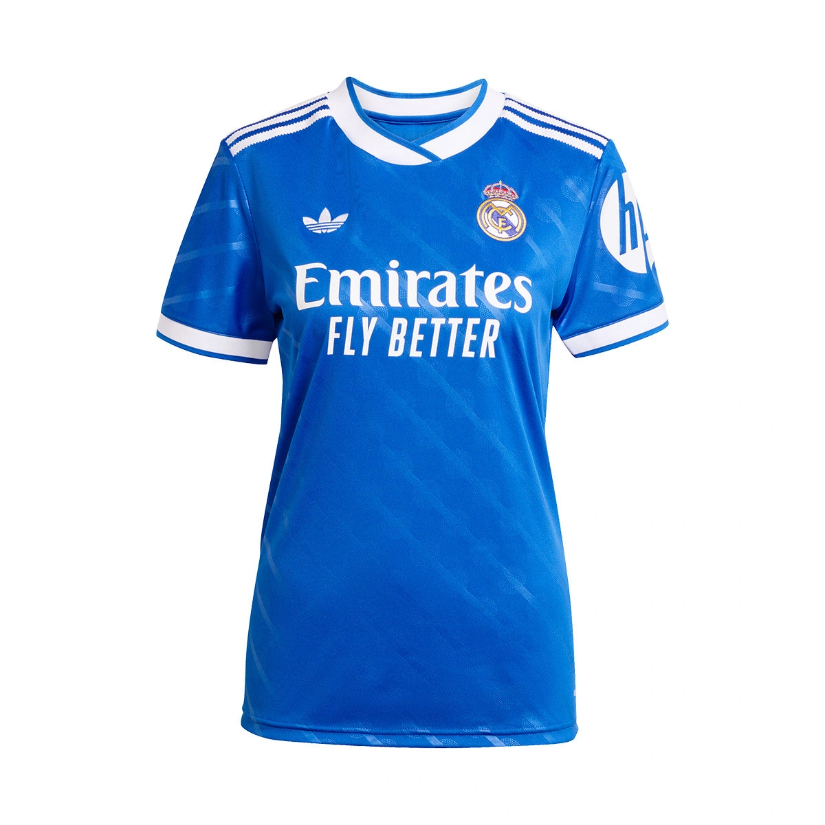 À la maison, on porte du bleu. Ce troisième maillot féminin du Real Madrid pour la saison 25/26 arbore la couleur préférée des Madridistas et des fans des 3 bandes.