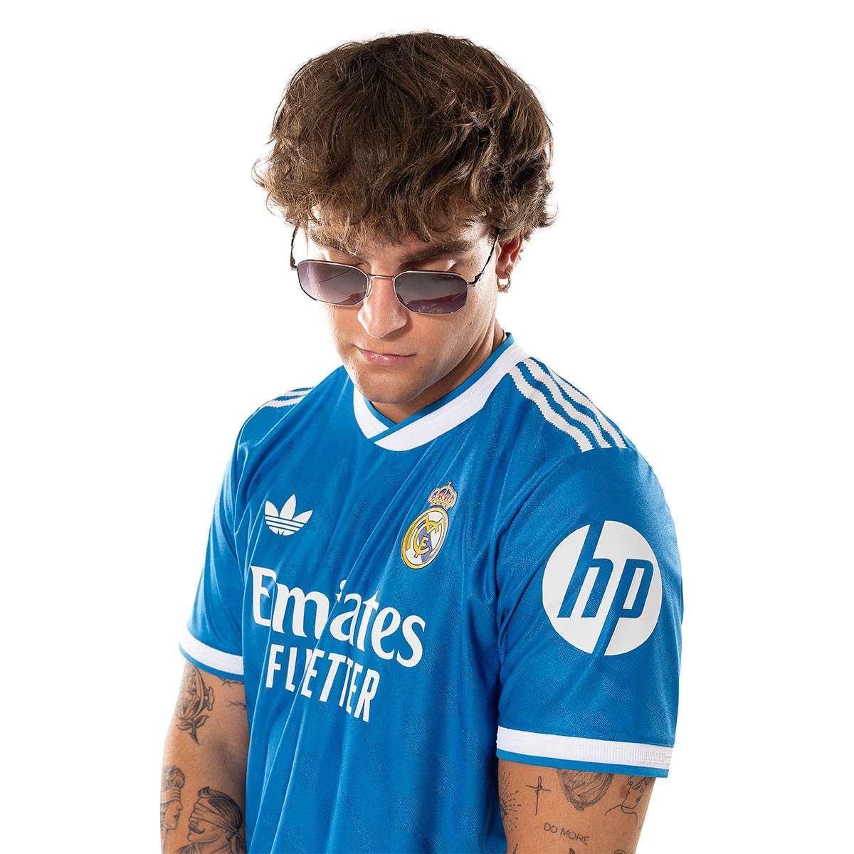 À la maison, nous portons du bleu. Nous vous présentons le troisième équipement du Real Madrid pour la saison 2025/26, conçu par adidas. Cette couleur classique d’adidas Originals rend hommage à l’identité de l’équipe du Bernabéu. Enfin, les 3 bandes dentelées et le trèfle sont un clin d’œil à l’histoire d’adidas.