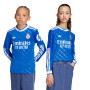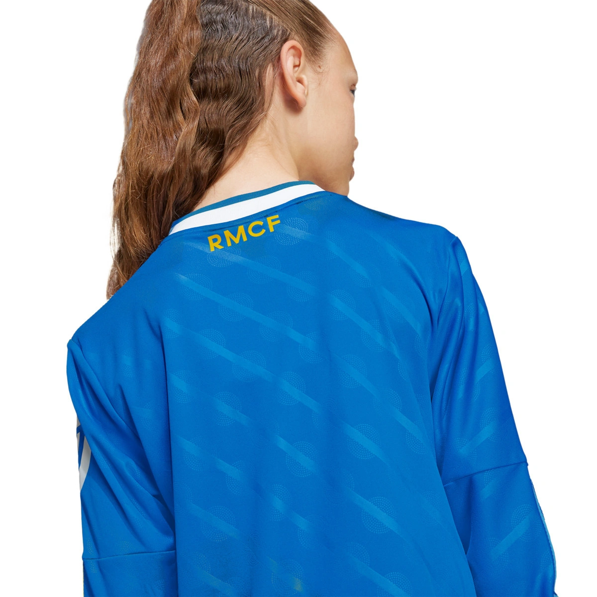 À la maison, on porte du bleu. Ce maillot à manches longues junior, troisième équipement du Real Madrid pour la saison 25/26, arbore la couleur préférée des madridistas et des fans des 3 bandes.
