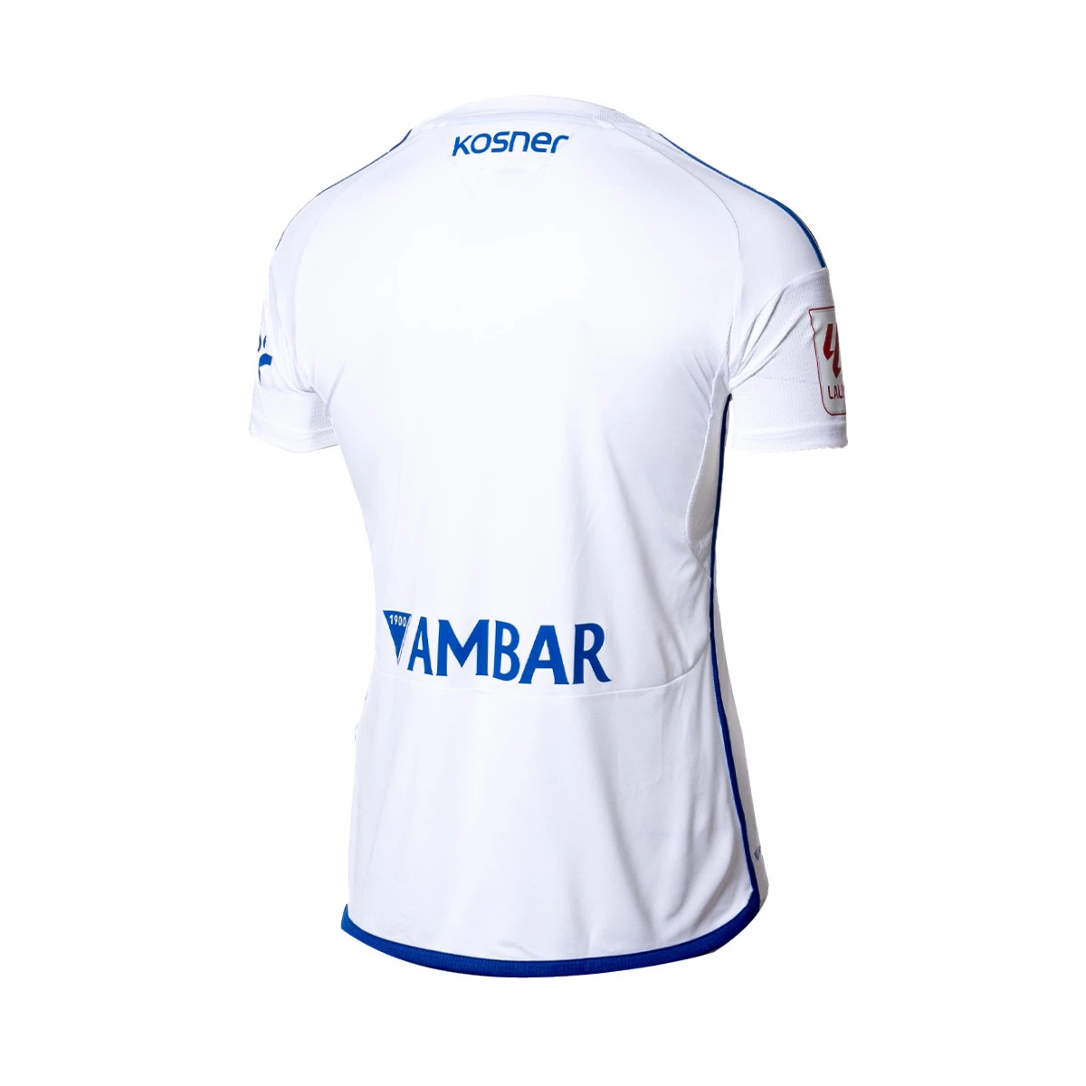 Maillot Domicile Real Zaragoza pour la saison 2023-2024.T-shirt coupe classique et coupe regular. Les couleurs de Saragosse prédominent, chemise blanche avec bordure bleue. Bouclier caoutchouté sur la poitrine et détail des trois bandes de la marque adidas sur les épaules.