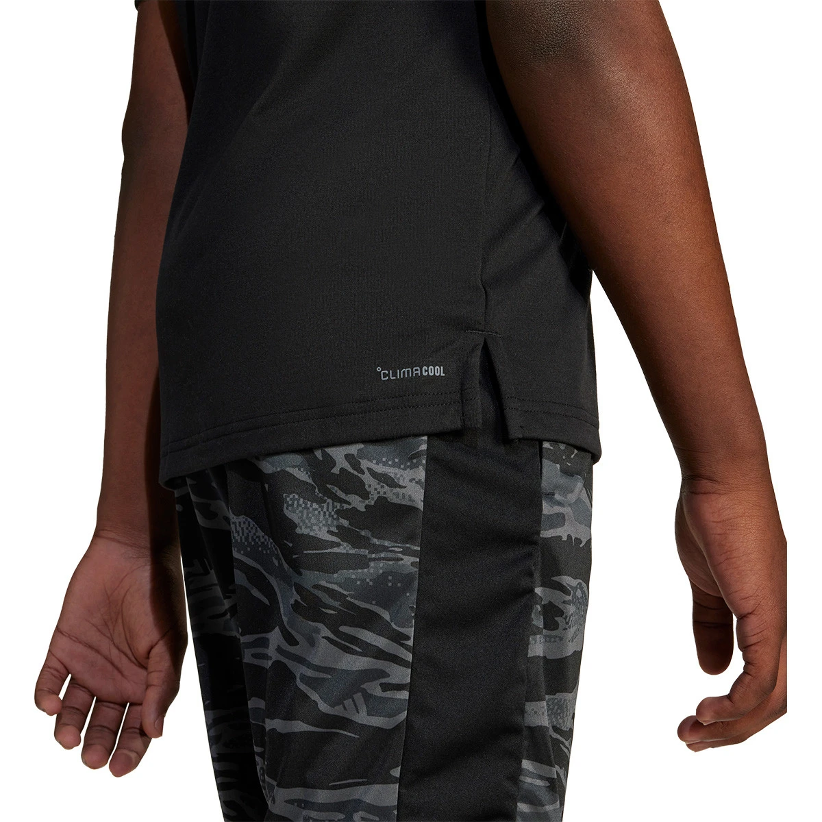 Ce T-shirt pour jeunes sportifs présente un imprimé camouflage qui apporte une touche aventureuse à vos entraînements. Sa coupe classique dessine une silhouette ample pour que tu puisses bouger en toute liberté et dans le plus grand confort. La technologie CLIMACOOL évacue la transpiration de votre peau, vous gardant au frais et au sec pour minimiser les distractions et optimiser vos performances. Associez-le à vos collants ou shorts préférés et abordez chaque séance avec style. CLIMACOOL vous aide à gérer la transpiration grâce à des matériaux qui évacuent rapidement l'humidité. Ses fibres à séchage rapide vous procurent une agréable sensation de fraîcheur.