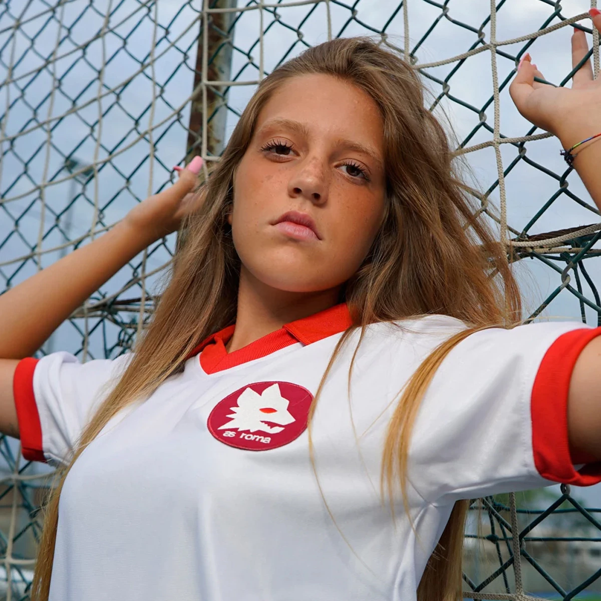 Maillot de l'AS Roma lors de la finale de la Coupe d'Europe 1984. Après avoir remporté le championnat d'Italie la saison précédente pour la première fois depuis 1942. Une saison extraordinaire à domicile leur permet de disputer la finale de la Coupe d'Europe contre Liverpool.