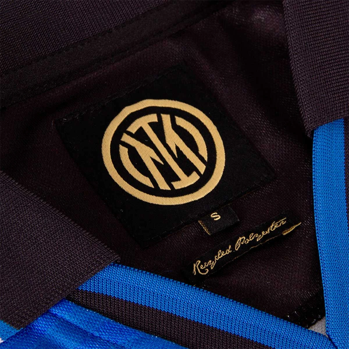 L'attaquant chilien a rendu ce maillot encore plus emblématique en ajoutant un signe + entre les chiffres 1 et 8, afin de continuer à porter le numéro 9 après avoir gentiment laissé Ronaldo prendre le numéro 9. Roberto Baggio, quant à lui, portait le numéro 10, complétant ainsi un trio légendaire d'attaquants. Les rayures noires et bleues sont de taille traditionnelle, avec un col entièrement noir, Pirelli sur la poitrine et le logo de l'Inter à gauche.