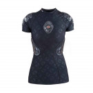 Coupe et design spécifique pour femme. Les coussinets RPT sont résistents aux impacts. Sa technologie permet de mieux protéger les côtes, sternum et épaules. Le tissu de compression UPS 50+ évacue la transpiration et vous garde au sec plus longtemps.