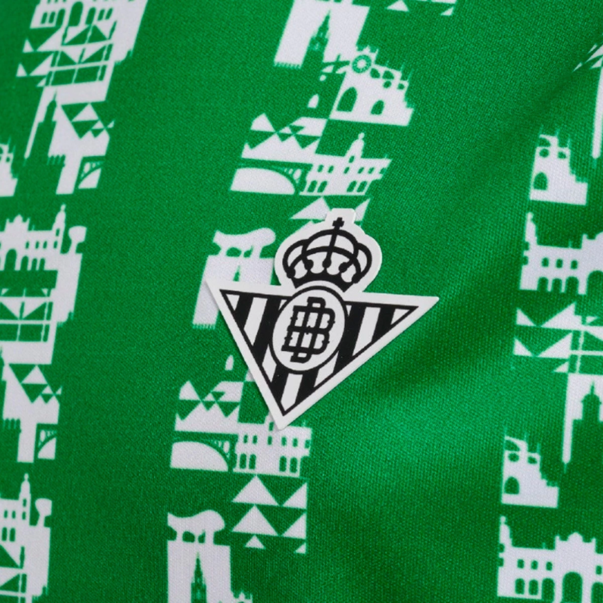 Le nouveau maillot d'avant-match enfant du Real Betis 24-25 est conçu en hommage à la ville de Séville. Il présente un design innovant, dans lequel les couleurs traditionnelles du club sont reflétées, ainsi que des rayures où l'on peut voir les icônes et les paysages les plus représentatifs de Séville.