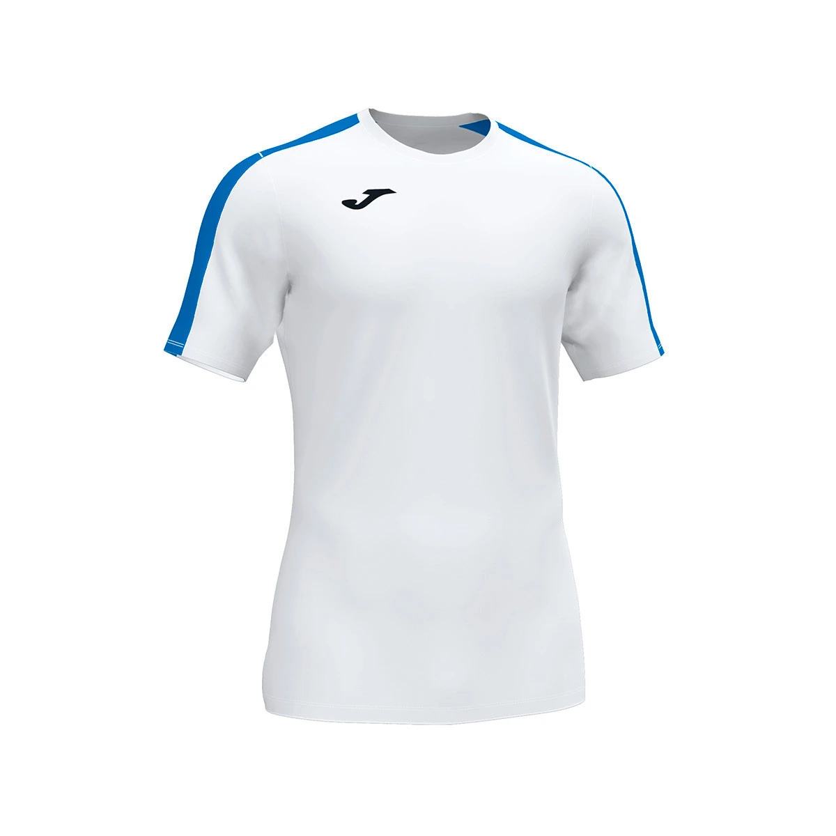 Maillot manche courte Joma pour la ligne Academy, avec col rond et des lignes à contraste sur les manches. Logo J sérigraphié.