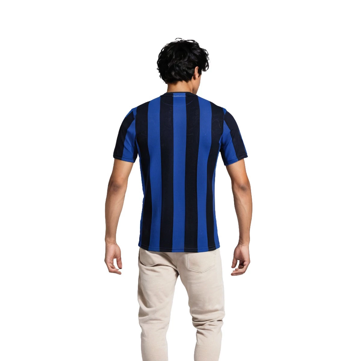 Le maillot domicile de l'Atalanta 2024-2025 présente un design avec les couleurs traditionnelles bleu et noir ainsi que le design classique à rayures verticales qui s'étend sur toute la longueur du maillot. Il est réalisé en tissu extensible caractérisé par sa légèreté, son élasticité et sa haute qualité.