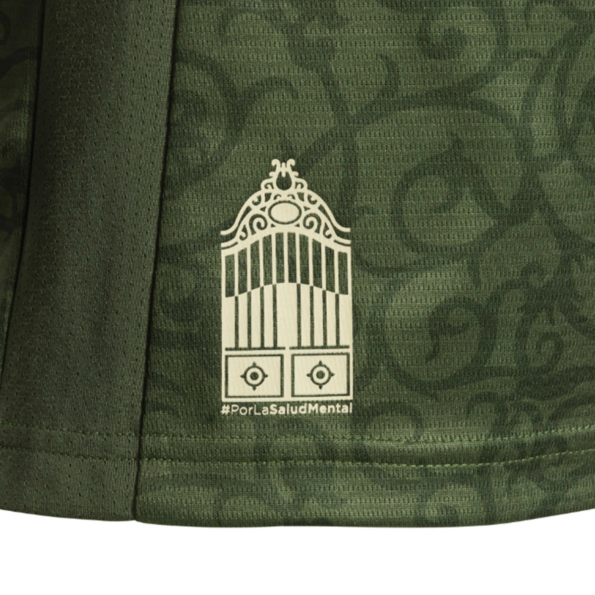 Les détails beiges apportent un contraste sophistiqué et une touche exclusive. Ce troisième maillot a été créé pour sensibiliser à la santé mentale en collaboration avec la Fondation Manantial.
