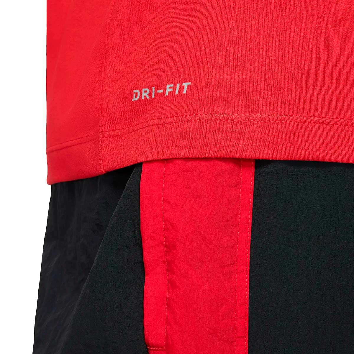 Le mélange de tissus tricotés offre une légèreté et une douceur semblables à celles du coton, et la technologie Dri-FIT évacue la transpiration pour maintenir la respirabilité et le confort.