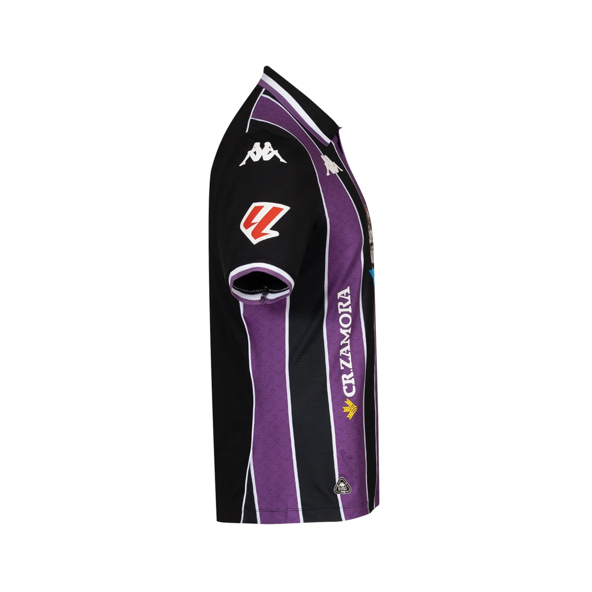 Kappa reprend le mythique maillot noir à rayures violettes qui a conquis le cœur des supporters blanquivioleta lors de l'inoubliable saison 1999-2000. Cette équipe, qui s'est hissée parmi les meilleures de la Première Division, avec des noms tels que César, Eusebio, Turiel, Víctor ou Chema, a non seulement laissé son empreinte sur le terrain, mais aussi dans l'âme de chaque supporter. C'était une génération qui savait se connecter avec son public, qui transformait le talent local et l'engagement en fierté collective.