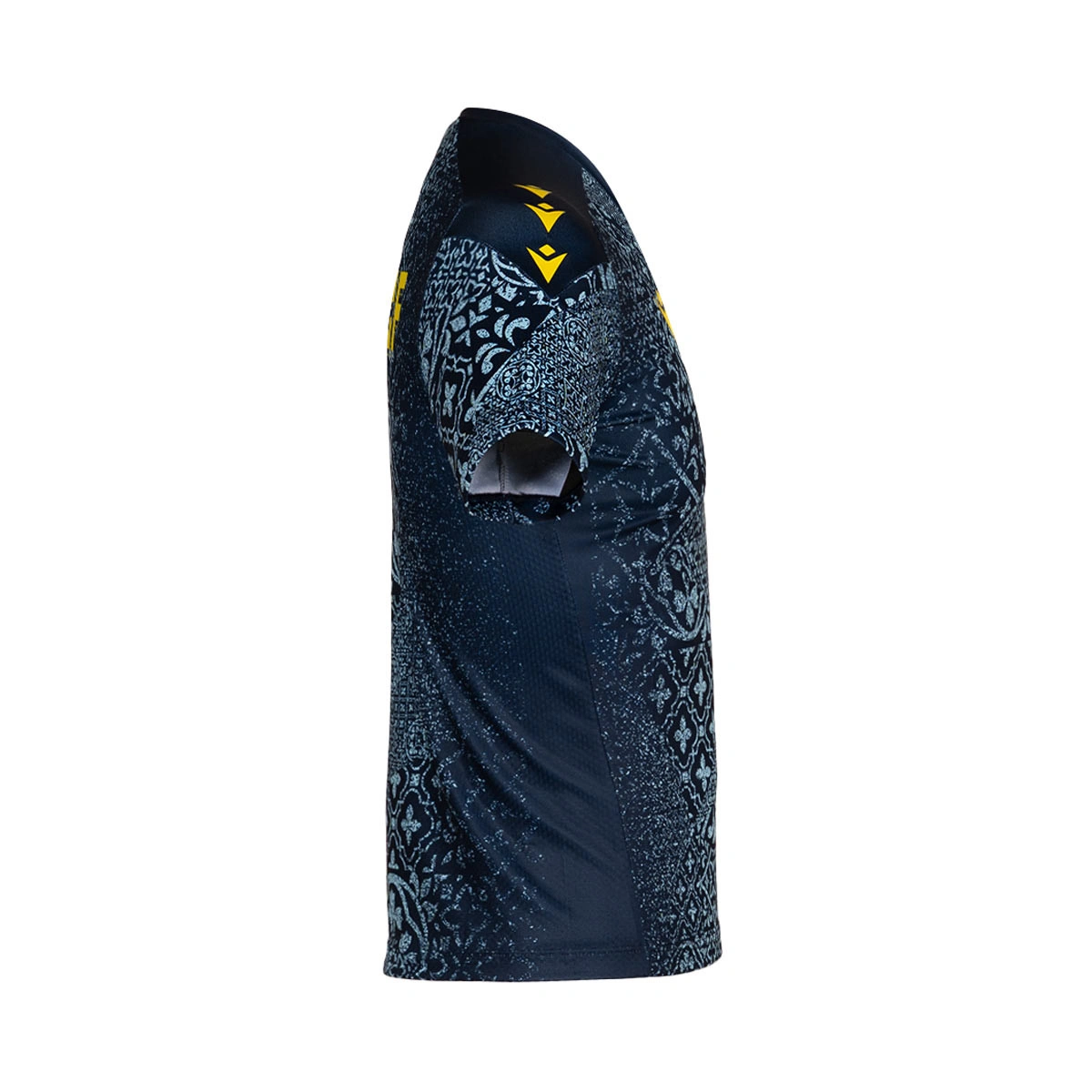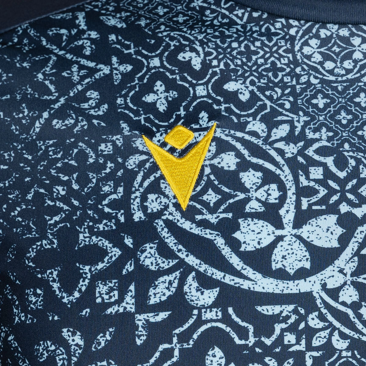Ce maillot du Cádiz CF pour la saison 2025-2026 sera porté par les joueurs lors des instants précédant les matchs. Son imprimé aux différentes nuances de bleu ne passera pas inaperçu à aucun moment.