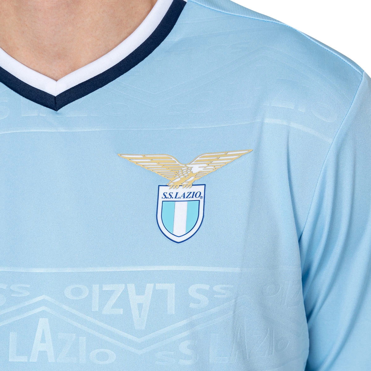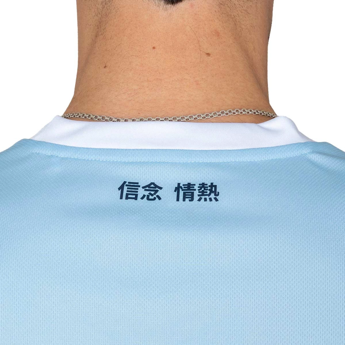 Le maillot domicile de la Lazio 2024-2025 s'inspire de différents maillots emblématiques portés par le club dans les années 90, redessinés avec une touche plus moderne. Le design présente un graphisme SS LAZIO embossé dans un motif géométrique, un col en V et des poignets dans le même tissu avec des contrastes blanc et bleu marine. Le slogan japonais au dos signifie "Una fe, una pasión", ce qui relie l'héritage de la marque à celui du club.