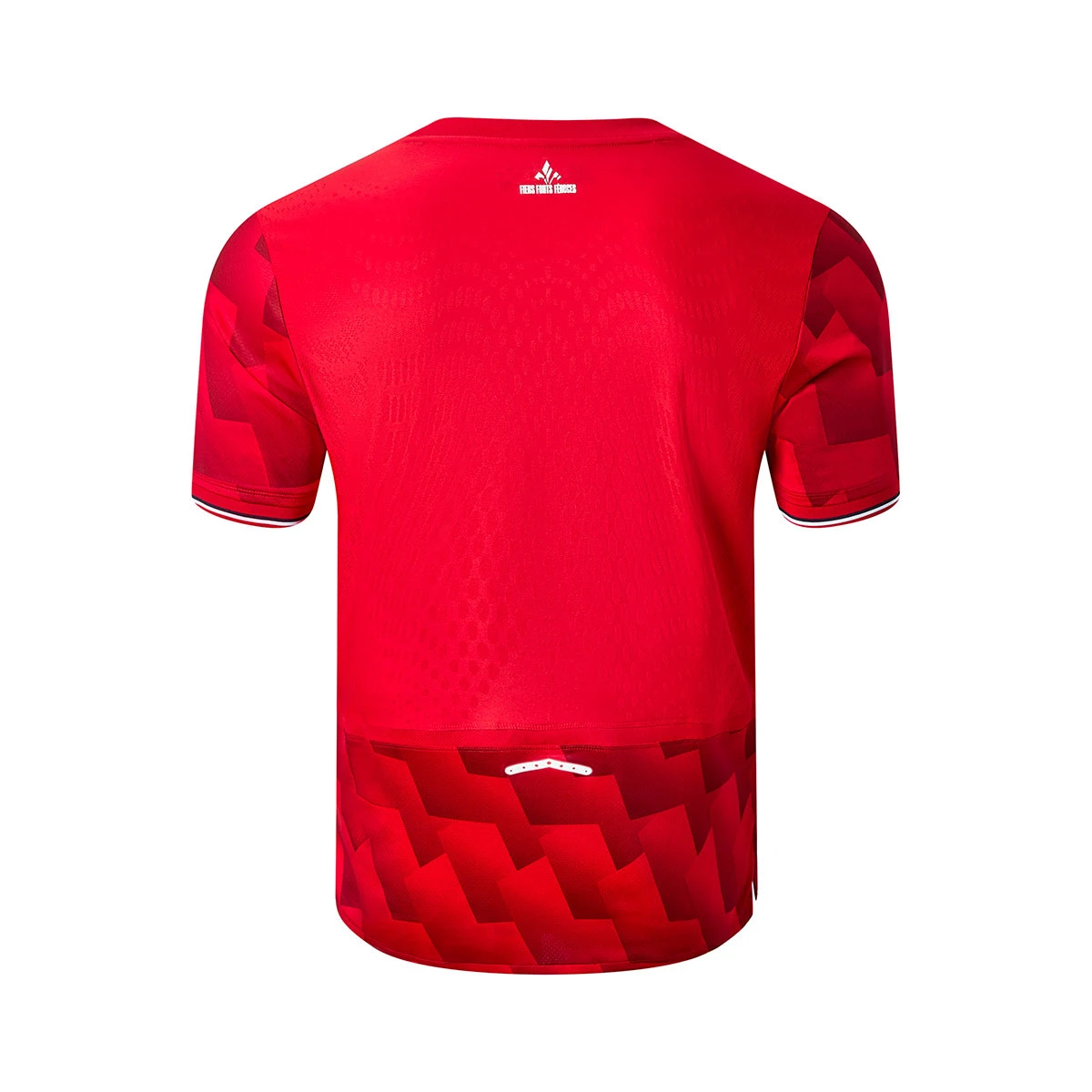 Fabriqué avec une technologie de pointe, le maillot est conçu pour des performances optimales, vous gardant au frais et au sec grâce à son tissu respirant de dernière génération.