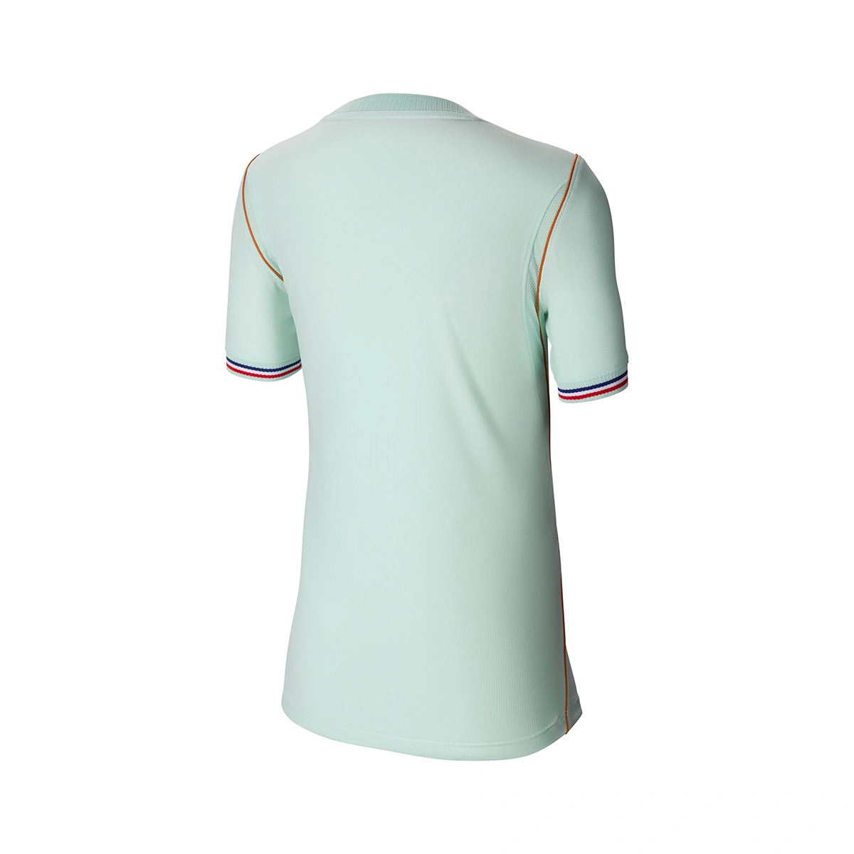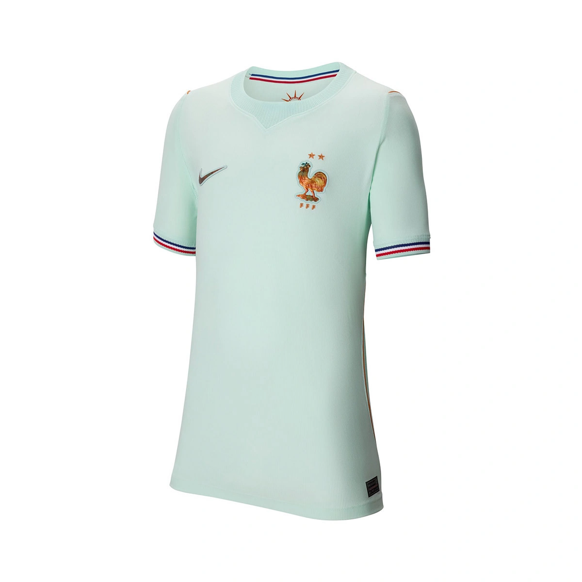Confectionné par Nike, cette version du kit extérieur s’inspire de la couleur de la Statue de la Liberté, cadeau qui unit la France au pays hôte de la Coupe du Monde 2026. Avec des détails bleus et rouges sur les manches et à l’intérieur, ce maillot allie histoire, tradition, modernité et élégance française.